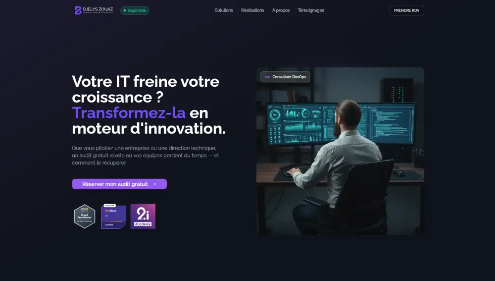 Je conçois des sites web professionnels, modernes, rapides et sécurisés pour les entrepreneurs qui veulent gagner en crédibilité, en visibilité et en clients — sans perdre de temps sur la technique.